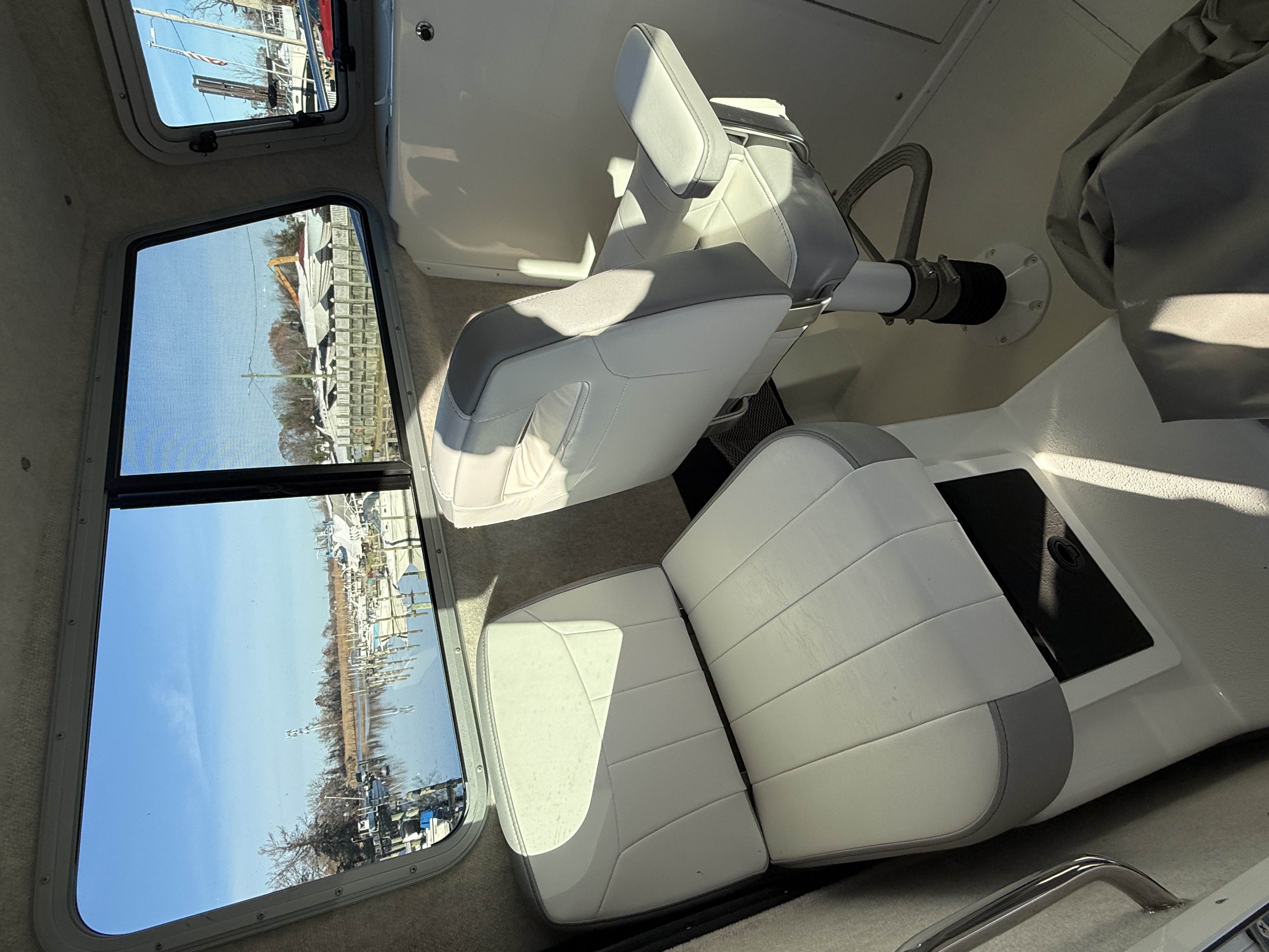 - Comfortable pilothouse with beautiful upholstery and seating for four