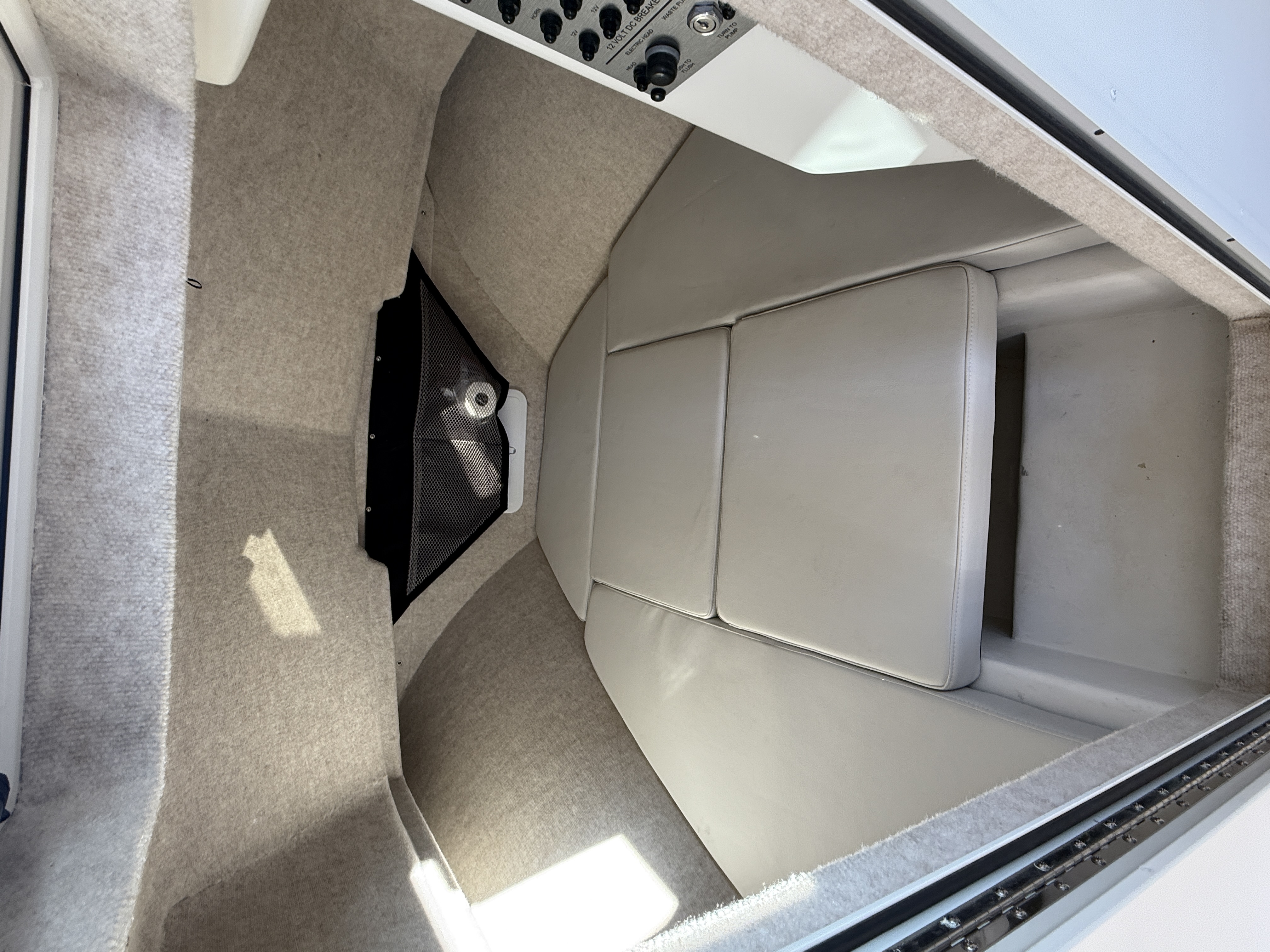 - Upholstered berth with electric marine head and holding tank